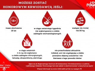 Pamiętajmy, że krew jest lekiem, którego nie da się niczym zastąpić, ani sztucznie wyprodukować – jego jedynym źródłem jest człowiek chcący podzielić się tym niezwykłym darem.