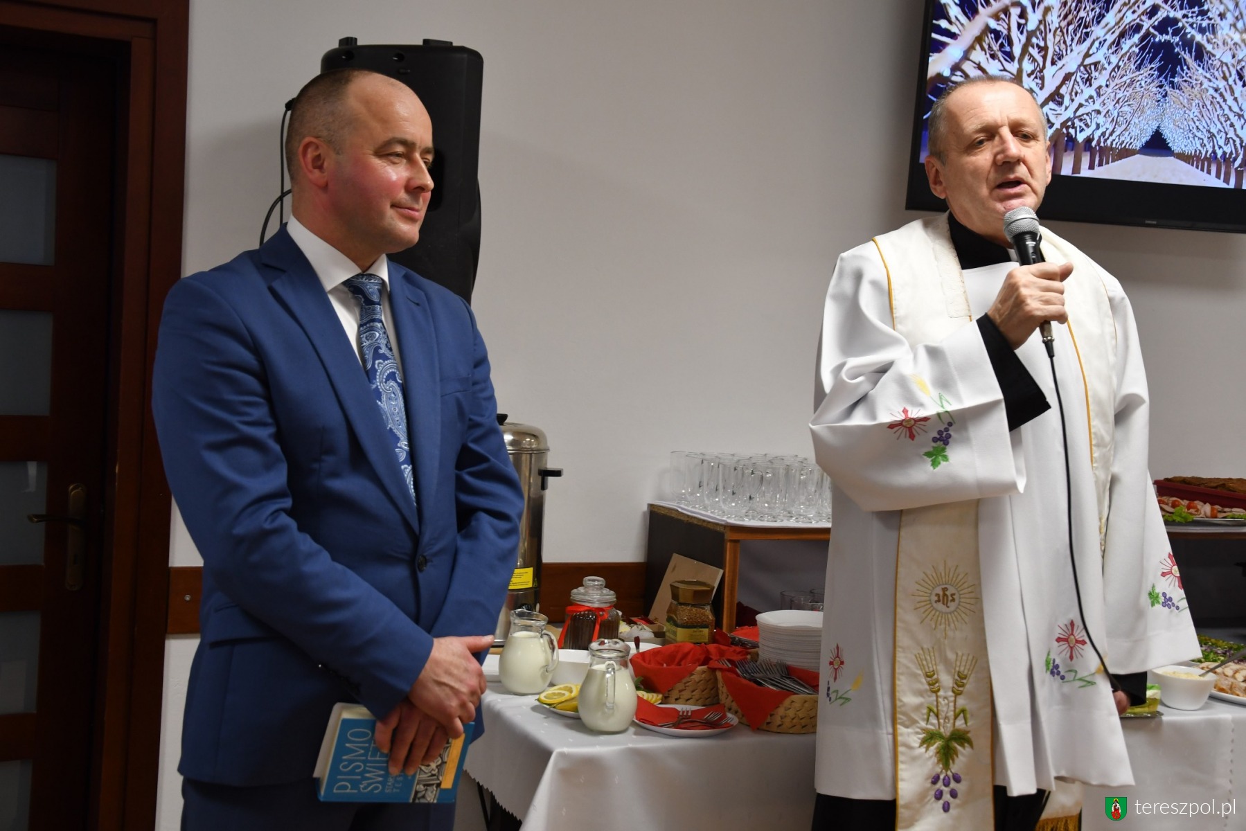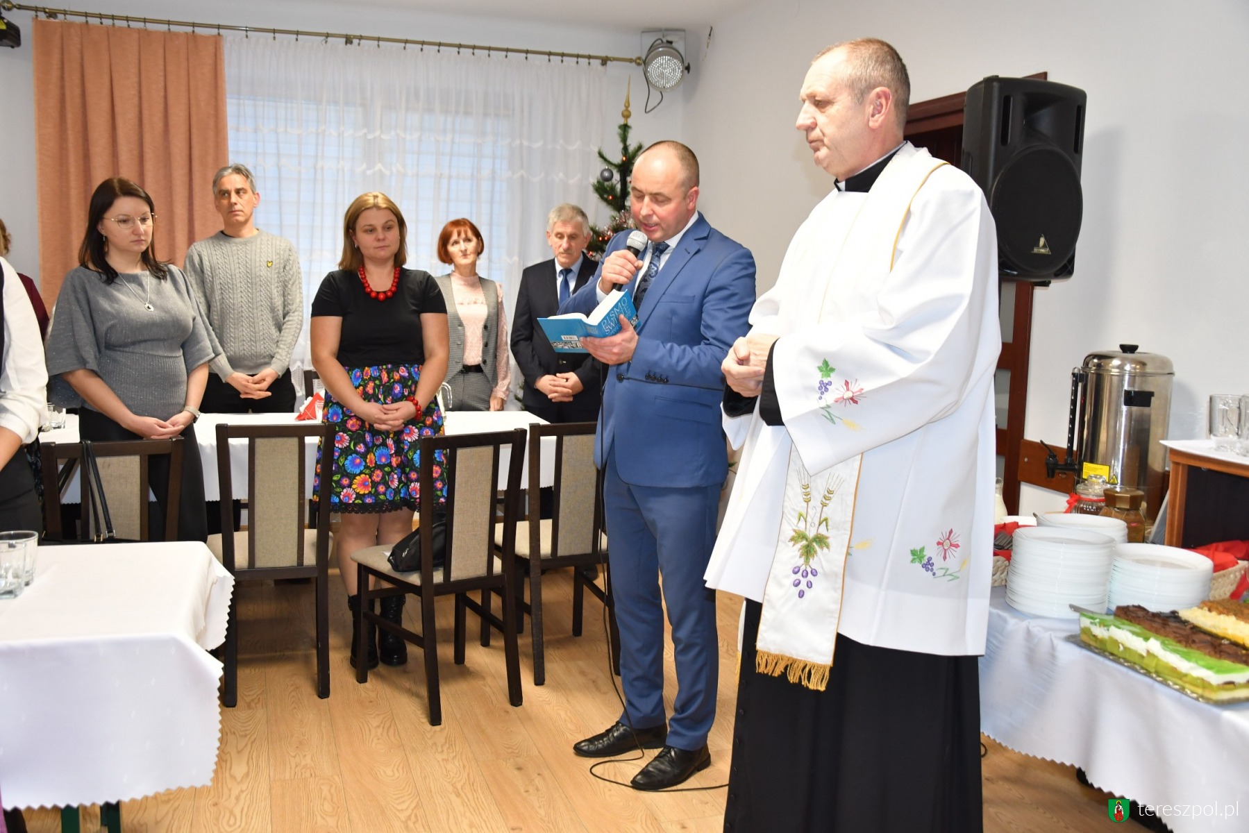 Spotkanie opłatkowe w Gminie Tereszpol odbyło się 8 stycznia w świetlicy w Tereszpolu-Zygmuntach. Była to okazja do wspólnego spotkania, złożenia sobie życzeń oraz podsumowania minionego roku. Modlitwę poprowadził ks. Janusz Dudzicz, proboszcz parafii pw. Matki Bożej Częstochowskiej w Tereszpolu-Zaorendzie. Wyjątkowego, świątecznego nastroju dodał odczytany przez wójta Jacka Pawluka fragment Ewangelii według św. Łukasza.