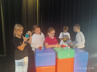 Część praktyczna pozwoliła dzieciom wcielić się w rolę twórców. Samodzielnie przygotowywały rekwizyty, eksperymentowały ze światłem i cieniem, a następnie odgrywały krótkie etiudy. Była to okazja do rozwijania wyobraźni, kreatywności i umiejętności współpracy w grupie, a także do odkrycia, że teatr może istnieć bez wielkiej sceny i bogatej scenografii.