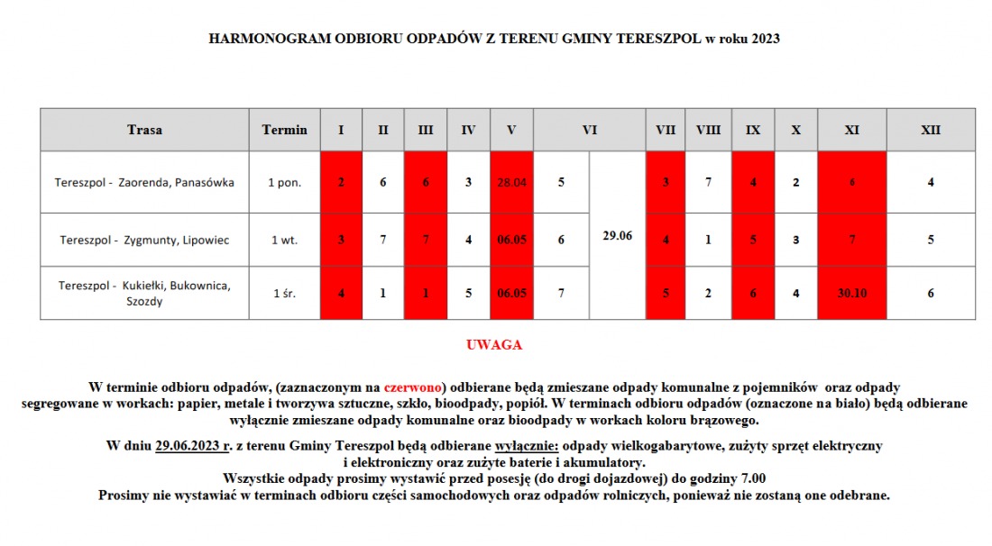 Od stycznia będzie obowiązywać nowy harmonogram wywozu odpadów komunalnych z terenu gminy Tereszpol.