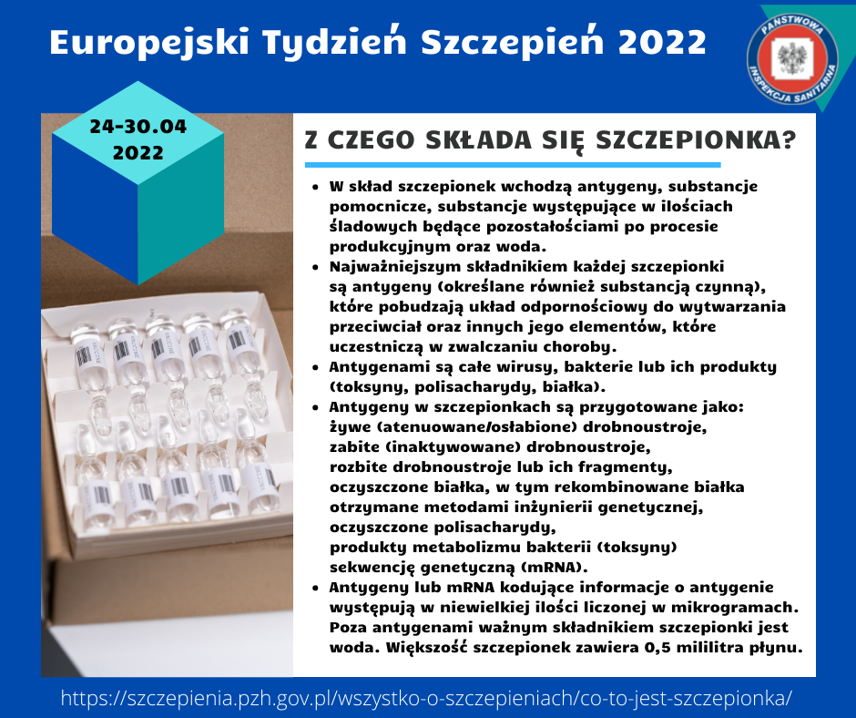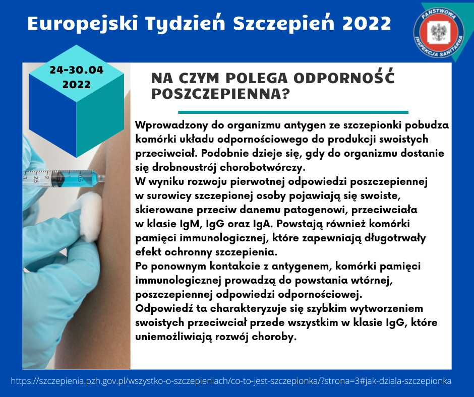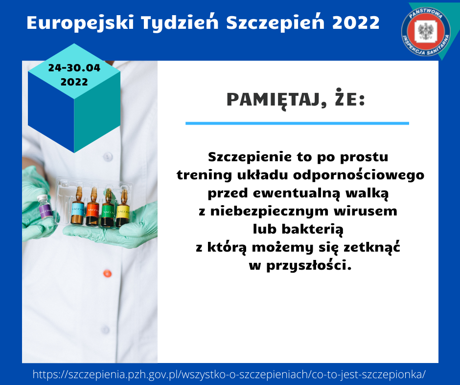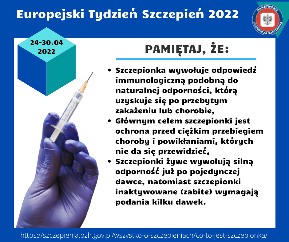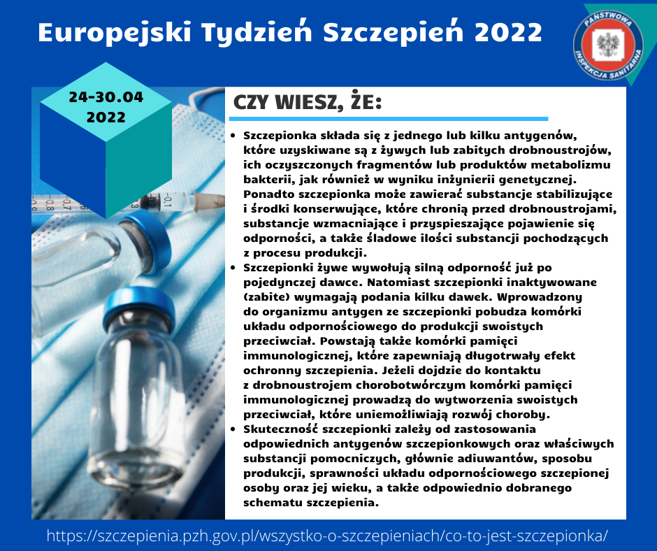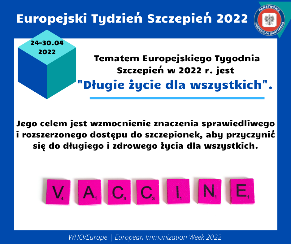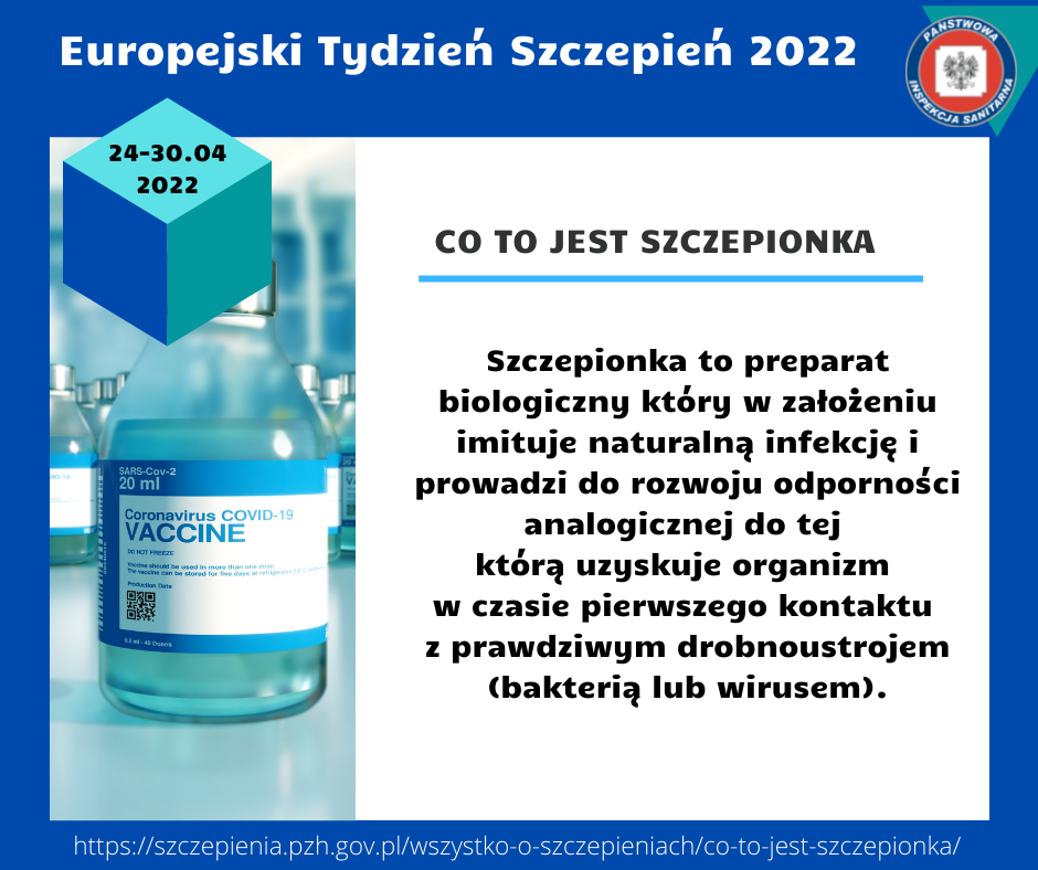 Celem Europejskiego Tygodnia Szczepień w Polsce jest wzmocnienie sprawiedliwego i rozszerzonego dostępu do szczepionek, aby przyczynić się do długiego i zdrowego życia dla wszystkich. Szczepionka to preparat biologiczny który w założeniu imituje naturalną infekcję i prowadzi do rozwoju odporności analogicznej do tej którą uzyskuje organizm w czasie pierwszego kontaktu z prawdziwym drobnoustrojem ( bakterią lub wirusem).