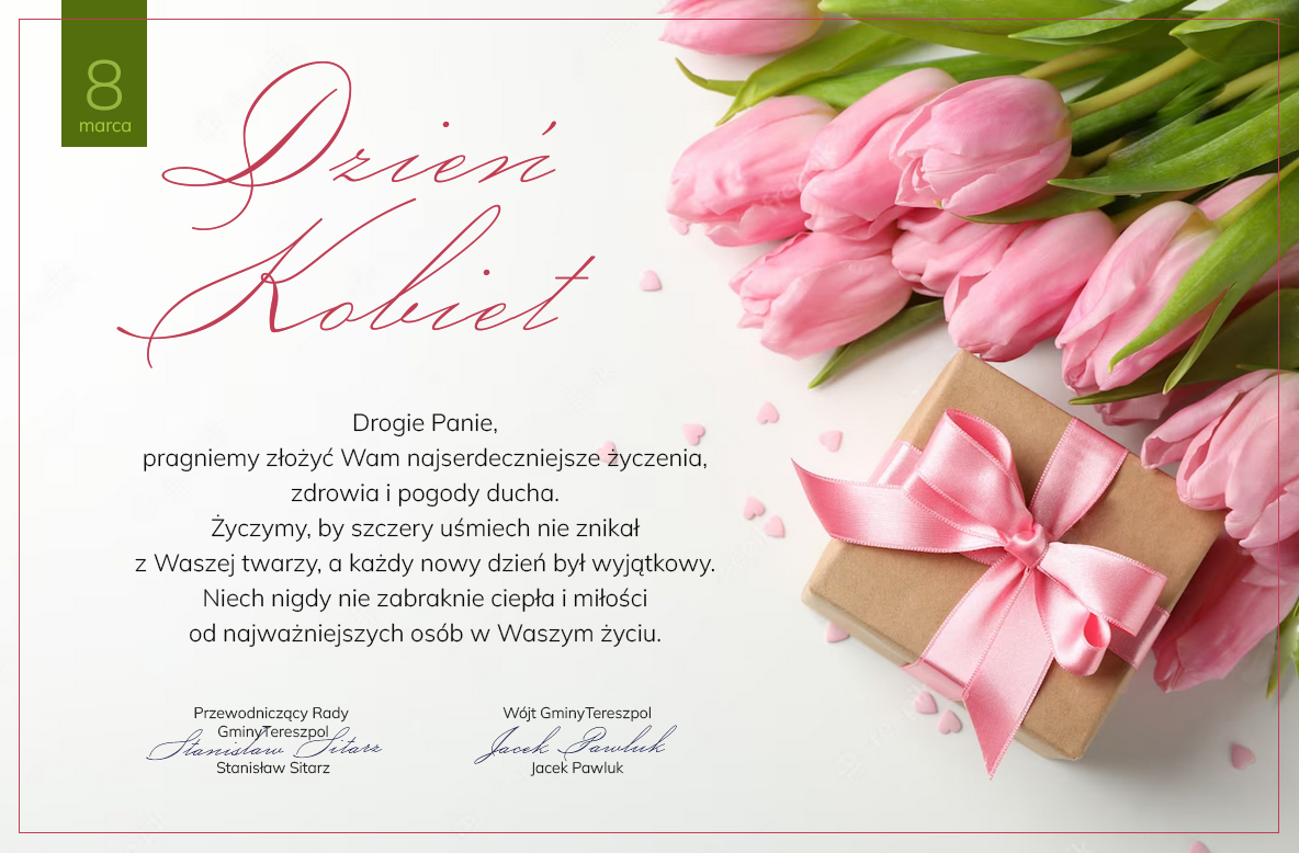 Drogie Panie, pragniemy złożyć Wam najserdeczniejsze życzenia, zdrowia i pogody ducha. Życzymy, by szczery uśmiech nie znikał z Waszej twarzy, a każdy nowy dzień był wyjątkowy. Niech nigdy nie zabraknie ciepła i miłości od najważniejszych osób w Waszym życiu.