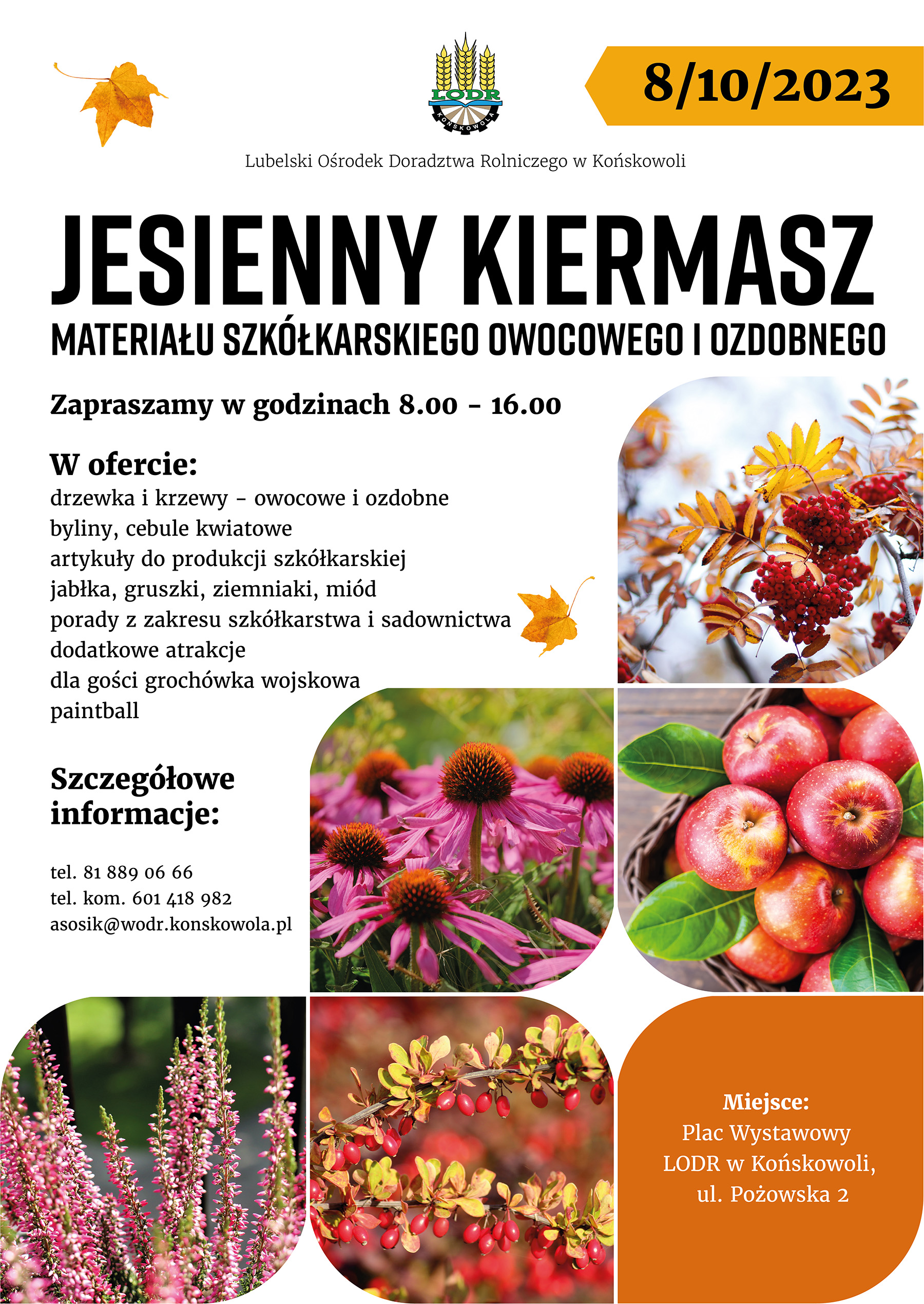 Kiermasz Jesienny 2023.10.05 Lubelski Ośrodek Doradztwa Rolniczego w Końskowoli organizuje Jesienny Kiermasz w dniu 8 października 2023 roku.