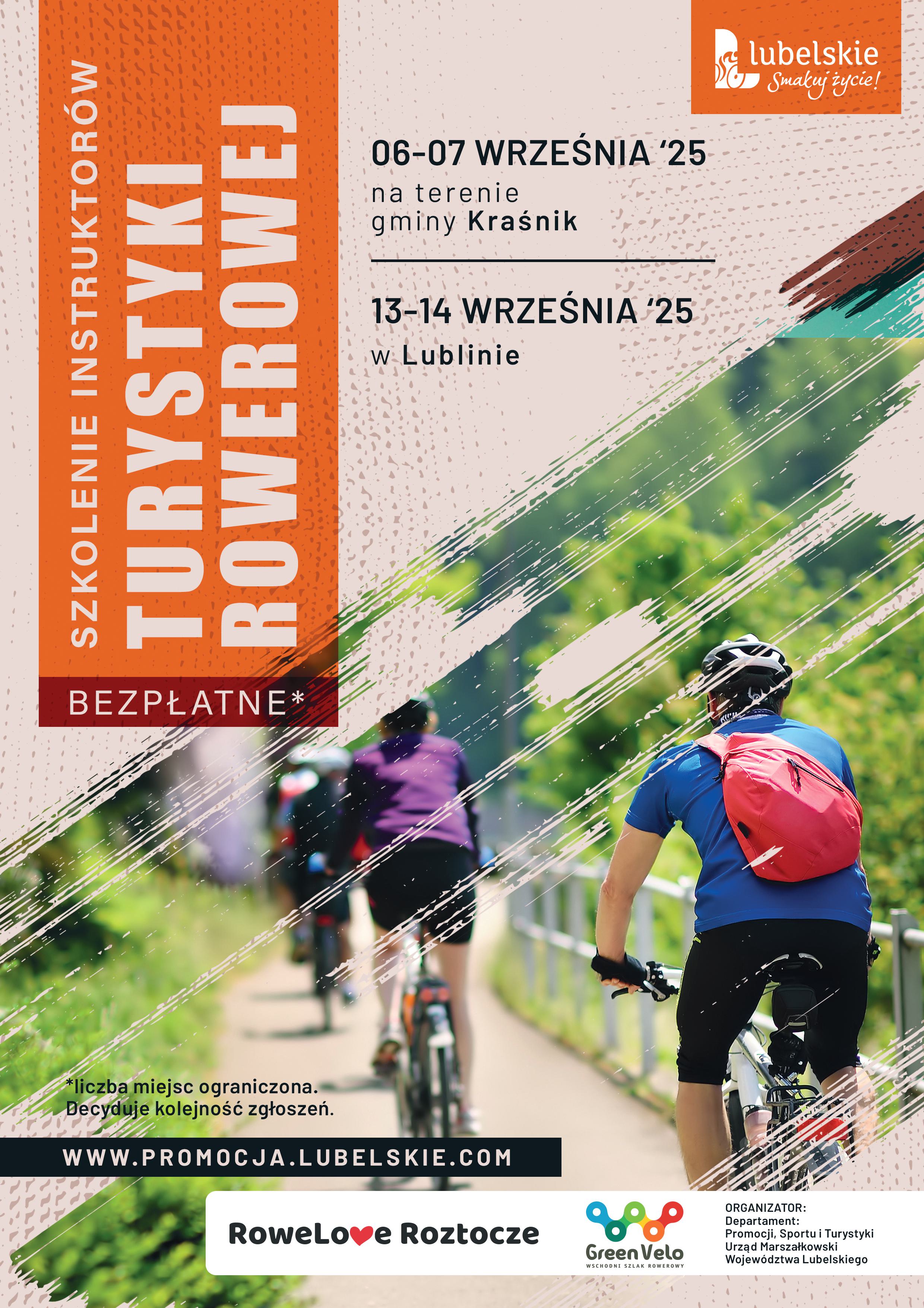 Oddział Turystyki w Departamencie Promocji, Sportu i Turystyki Urzędu Marszałkowskiego Województwa Lubelskiego informuje, że organizuje Szkolenie Instruktorów Turystyki Rowerowej w Lublinie oraz gminie Kraśnik.