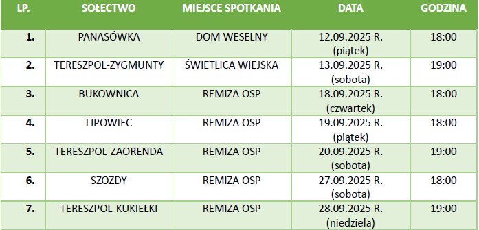 Harmonogram zebrań sołeckich w Gminie Tereszpol