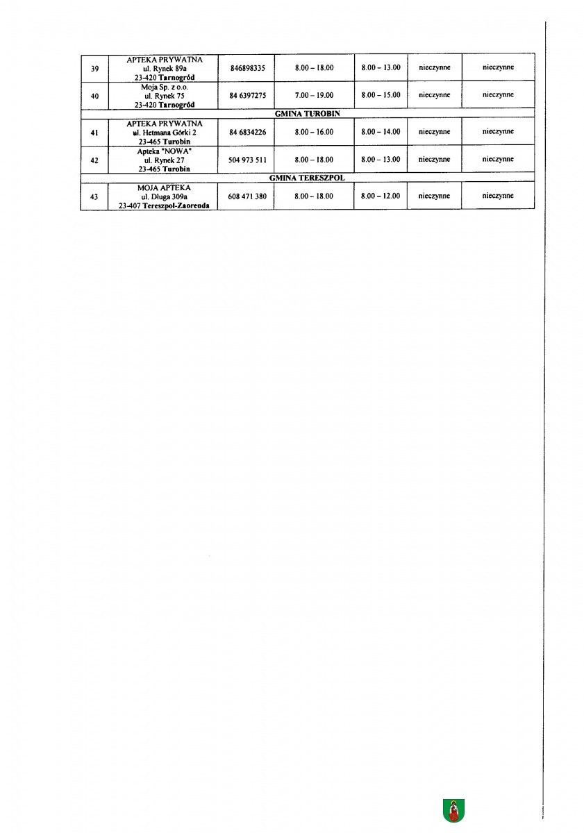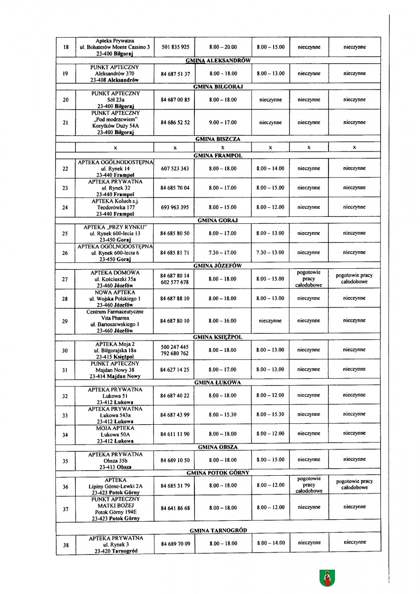 Galeria: Zmiana rozkładu godzin pracy aptek na terenie Powiatu Biłgorajskiego w 2023 r. 2023-06-30 miniaturka miniaturka miniaturka miniaturka