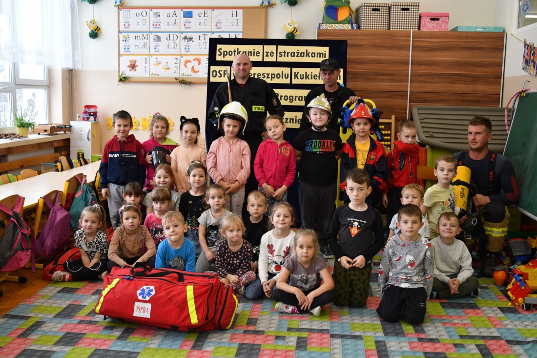 Strażacy z Ochotniczej Straży Pożarnej w Tereszpolu-Kukiełach przyjechali do przedszkolaków, aby opowiedzieć im o swojej pracy.