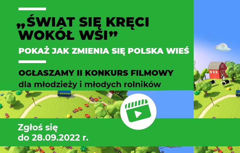 W imieniu Ministra Rolnictwa i Rozwoju Wsi, który jest Organizatorem konkursu, zapraszamy do udziału w II ogólnopolskim, amatorskim konkursie filmowym „Świat się kręci wokół wsi”. Nagraj i prześlij swój film do Organizatora konkursu. Pokaż, jak zmienia się polska wieś.