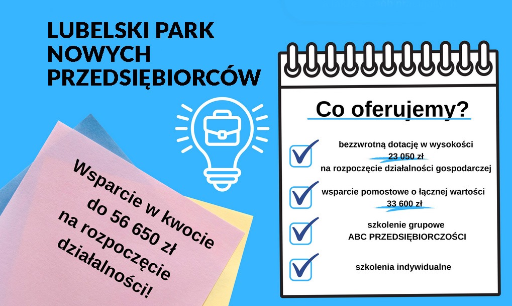 Lubelski Park Naukowo-Technologiczny S. A. realizuje „Lubelski Park Nowych Przedsiębiorców’’, którego celem jest zwiększenie liczby nowych i trwałych miejsc pracy w regionie poprzez stworzenie 66 nowych miejsc pracy na terenie województwa lubelskiego w 55 nowo powstałych firmach.