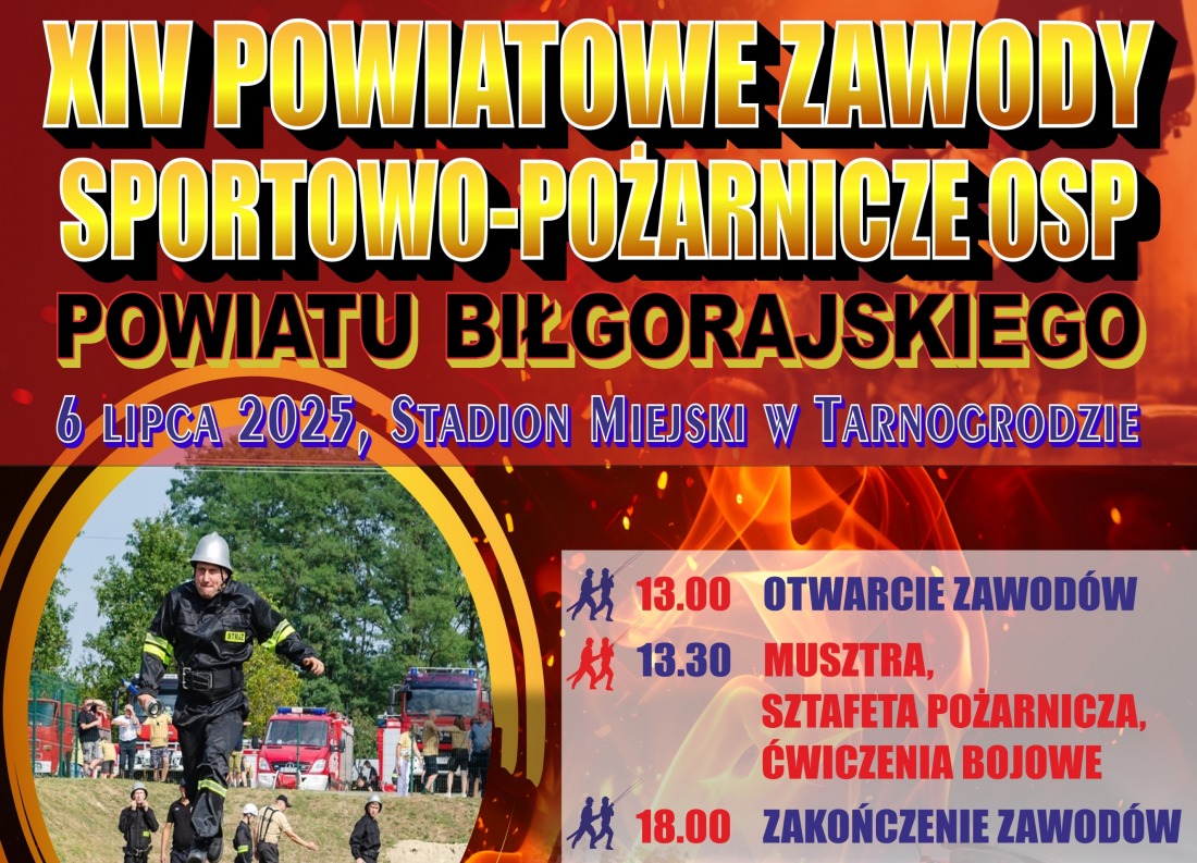 6 lipca na stadionie miejskim w Tarnogrodzie odbędą się Powiatowe Zawody Sportowo-Pożarnicze. Otwarcie zawodów o godz. 13:00.